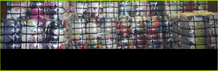 different categories before they are placed into tubs and weighed. The tubs, which are now full of clothing, are then fed into our